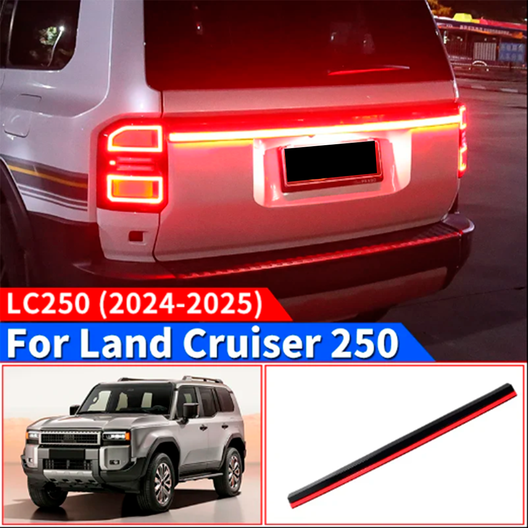 La barra LED trasera decorativa para la Toyota LC250 (modelos 2024–2025) aporta un estilo moderno, elegante y totalmente personalizado al diseño posterior del vehículo.